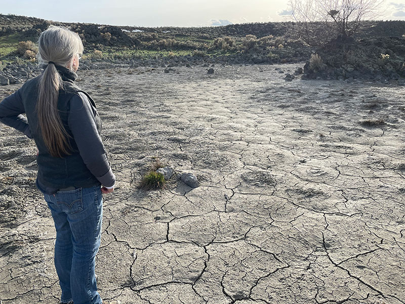 From this spot we could see the crater that we would visit the next day, the same one I had taken granddaughters to last fall. This trip would circle the lava field put out by that crater.