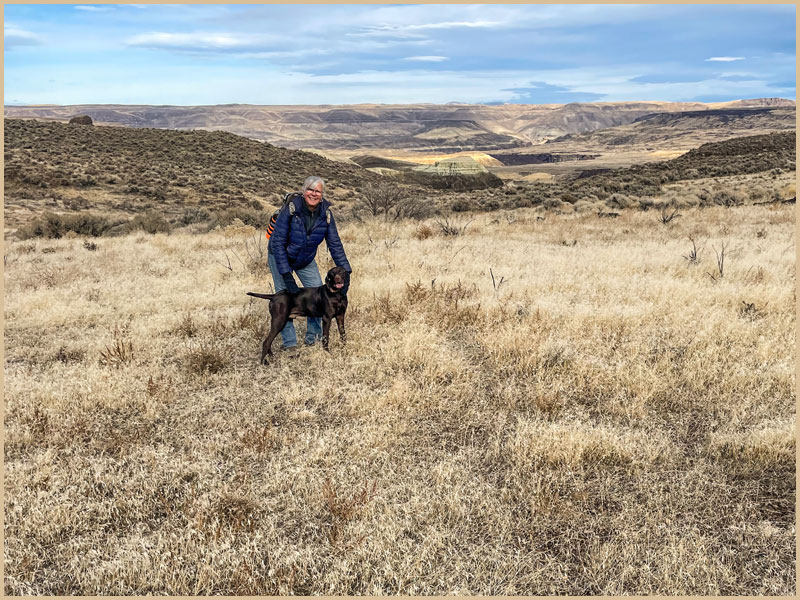 Temps were in the high teens so we outfitted Orley with his red jacket. Can chukar see red? I know those birds make me see red most of the time.
