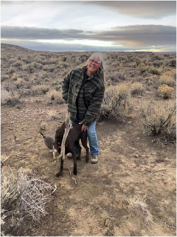 Coming up from the canyon rim."Look Orley, that might be a chukar over there." I glued carpet to the top of our ice chest years ago for dogs to use, Orley is the first one to give it a go.
