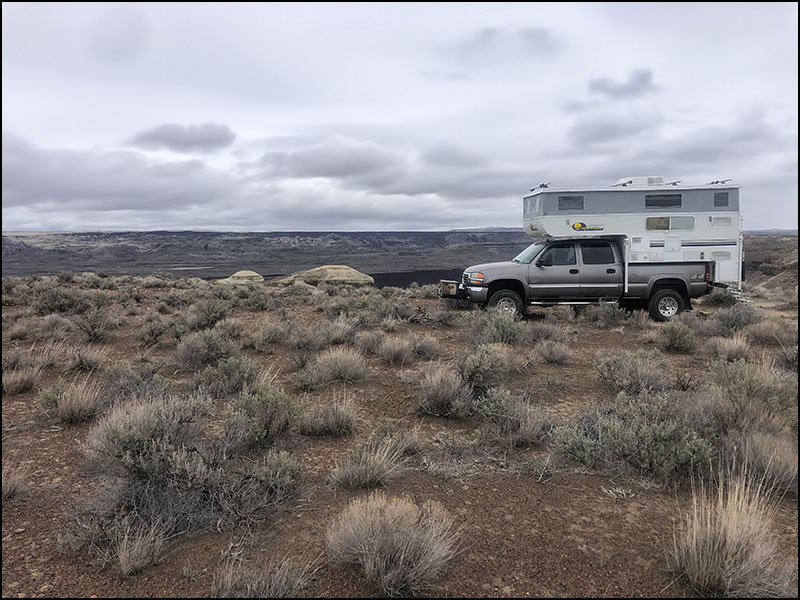 A weather check showed the possibility of rotten weather with a small chance of a couple of partly cloudy days. We've learned many years ago when going camping in Anza Borrego from our home in Fullerton California that if it was raining at the time of departure...to keep going. Most friends would drop out and not go but we always went after so much work to get ready, and were always rewarded with gorgeous skies and a great time. This was no different as we drove through Jordan Valley, Oregon while it intermintenly snowed and rained. I was a bit upset since this was our only chance to go camping any time soon and I almost did the unthinkable, turned around to go home. Truly, I almost forgot a valuable lesson and gave up. Since we were about 30 miles from the turn-off I went on, knowing just knowing we were about to hit muddy roads and a rotten time.